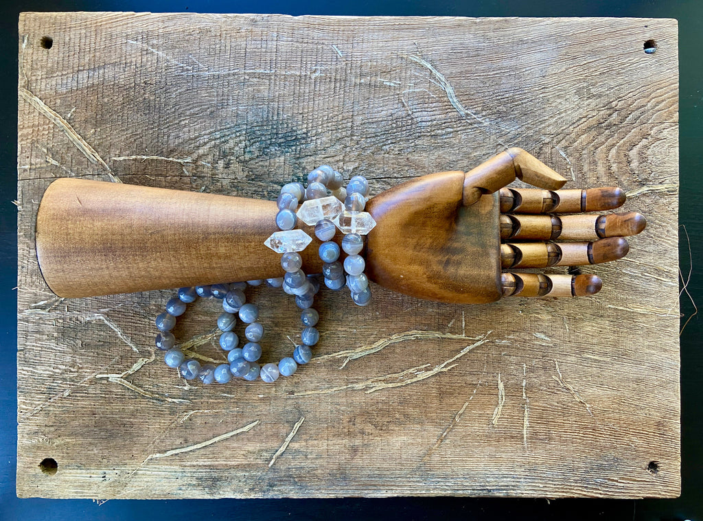 Grey Microfaceted Banded Agate showing off its strength and will power in this stunning bracelet.The gemstones in this piece support