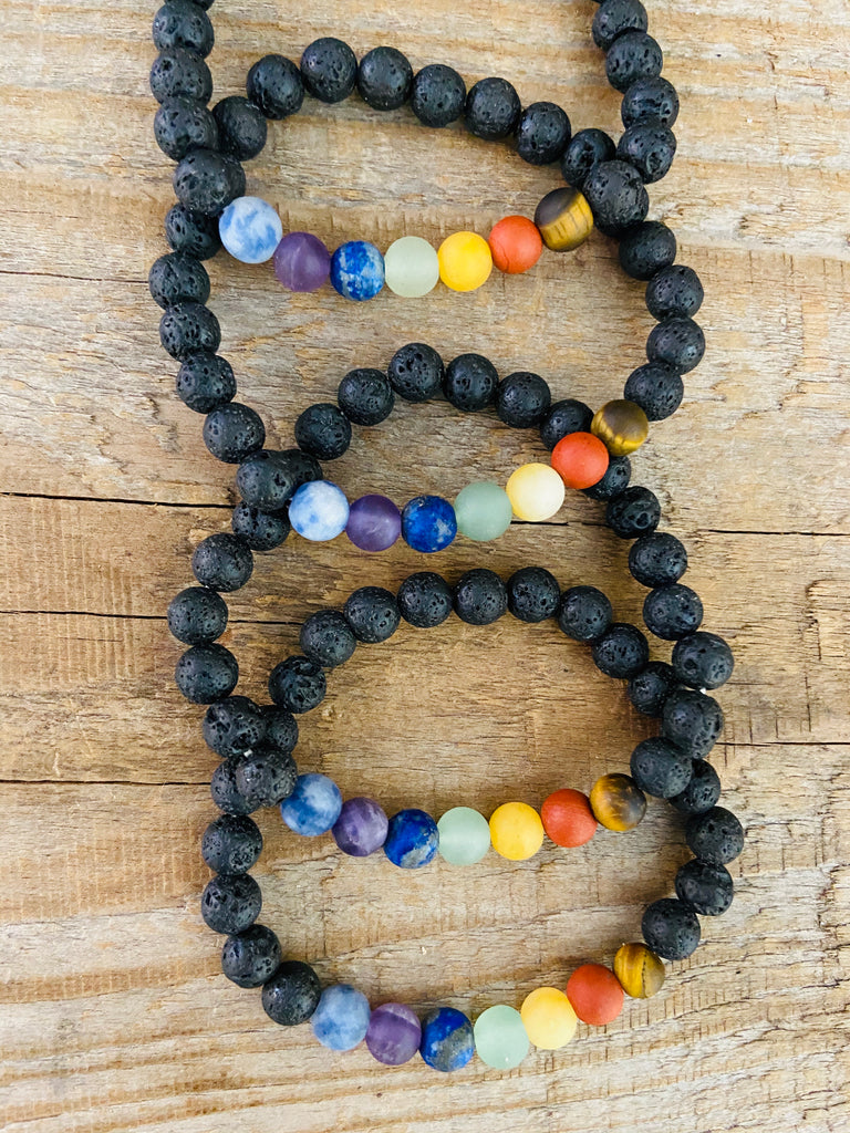 Jewelry with purpose. Balance your chakras with these beautiful bracelets made with volcanic lava rock and all natural gemstone beads: